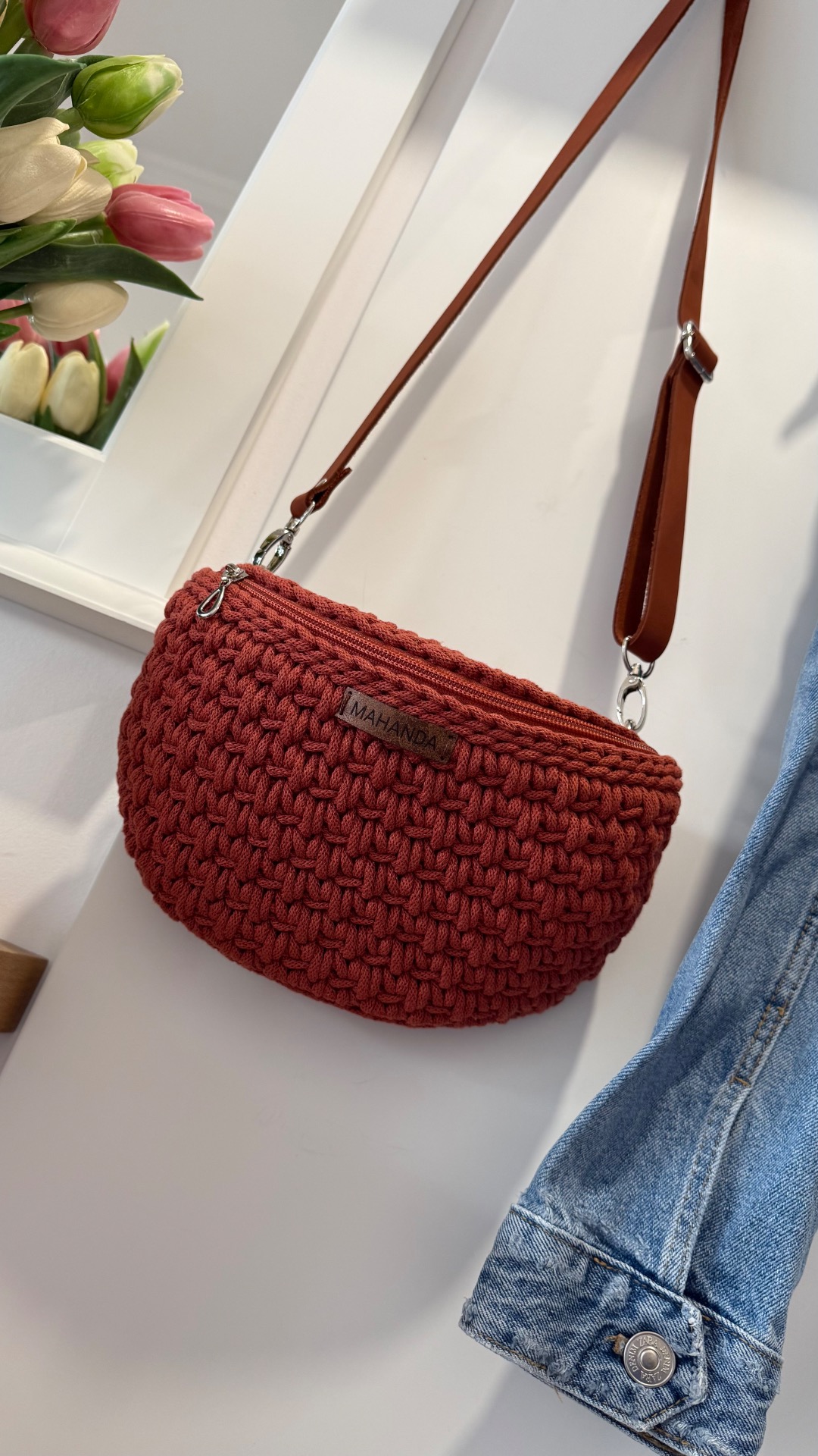 Kifinomult, kézzel horgolt övtáska prémium zsinórfonalból, amely a modern elegancia és a praktikum tökéletes egyensúlyát képviseli. Strukturált formája stabil tartást biztosít, miközben puha tapintású és rendkívül kényelmes viselet.
